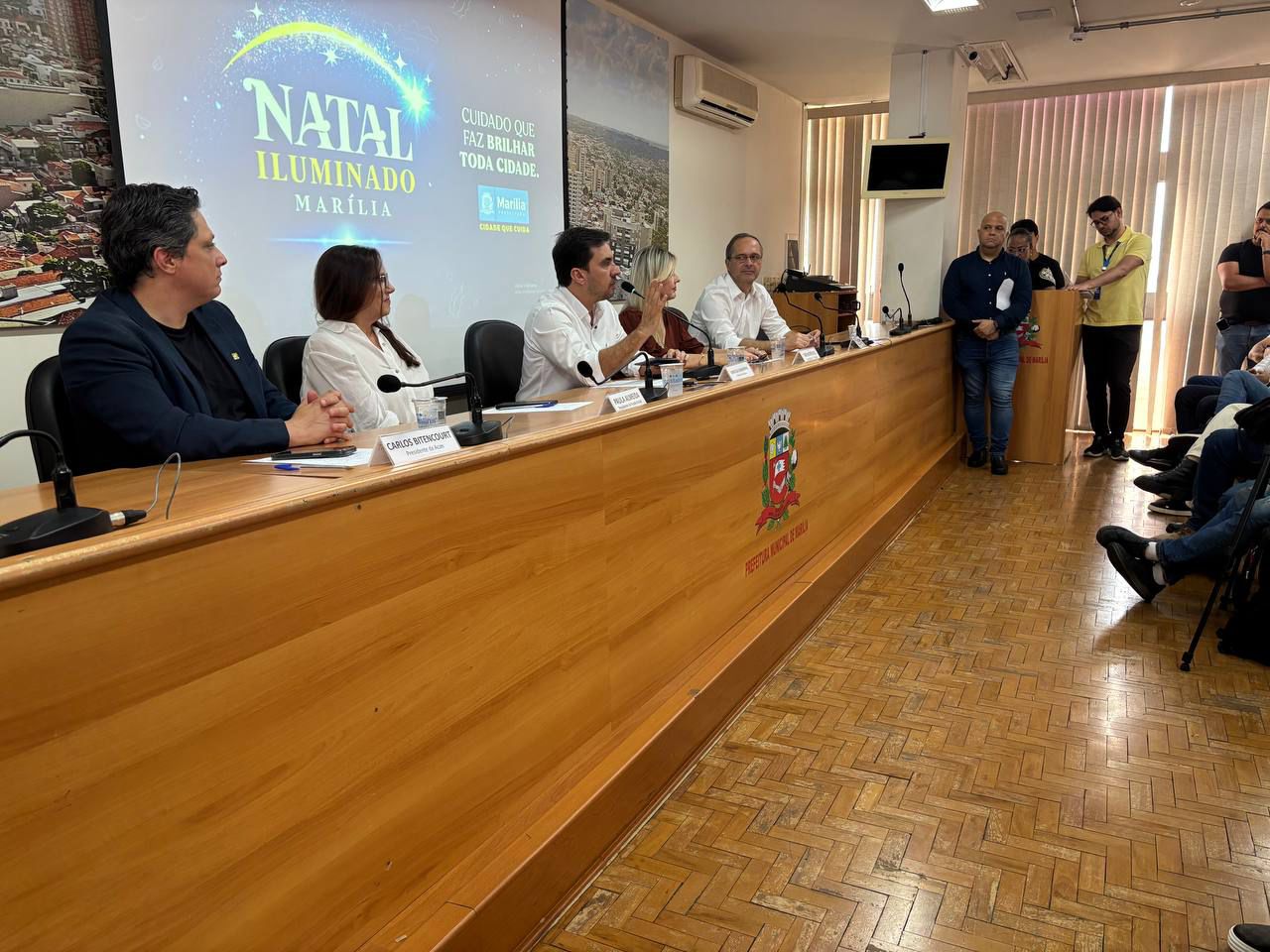 A Prefeitura de Marília realizou na tarde desta segunda-feira (24), no auditório do gabinete (2º andar do Paço Municipal), o lançamento oficial da Campanha Natal Iluminado Marília 2025.