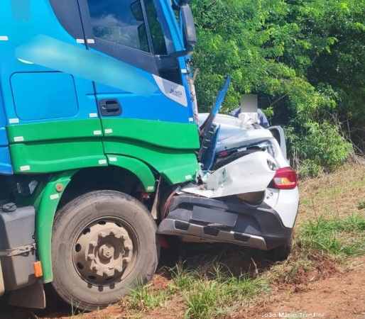 Acidente entre carro e caminhão em estrada da região deixa duas pessoas feridas