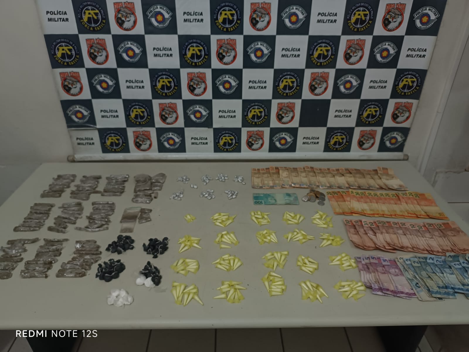 Com o menor, as autoridades encontraram um saco plástico contendo 105 porções de maconha, 238 porções de cocaína, 73 porções de crack, além de R$ 1.411,75 em dinheiro. Diante das evidências, o adolescente foi conduzido à Central de Polícia Judiciária, onde foi autuado em flagrante por Ato Infracional de tráfico de drogas e permanece à disposição da justiça.