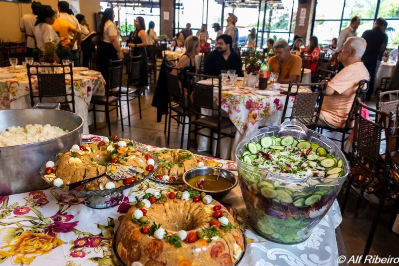 O cardápio encantou os presentes com sabores autênticos do interior: costela fogo de chão, farofa, ar