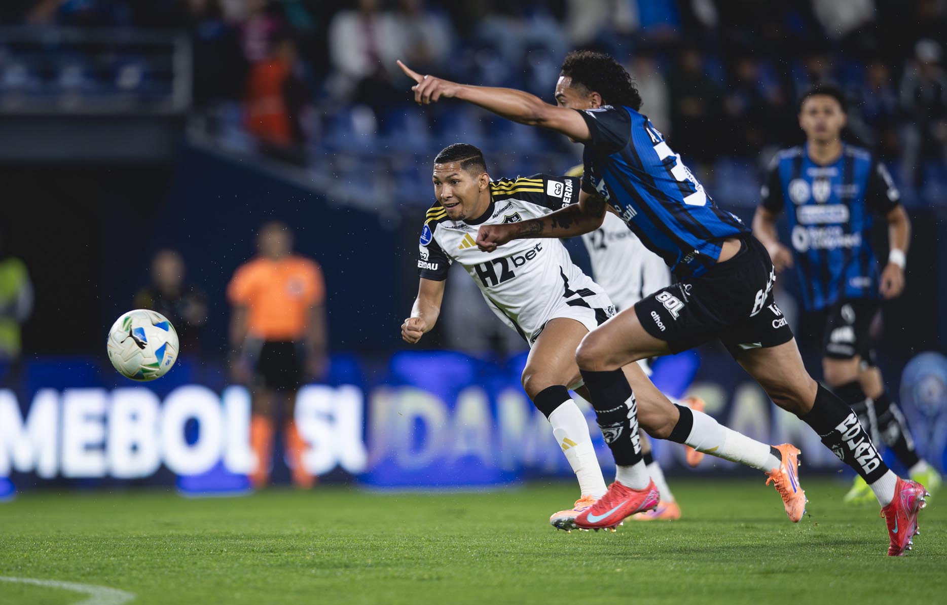 A partida começou com um susto para o time mineiro. Logo aos seis minutos, após revisão do VAR, o Independiente del Valle teve um pênalti a seu favor. Sornoza, velho conhecido do futebol brasileiro com passagens por Corinthians e Fluminense, não desperdiçou a chance, batendo com categoria no ângulo esquerdo de Everson para abrir o placar e inflamar a torcida equatoriana.