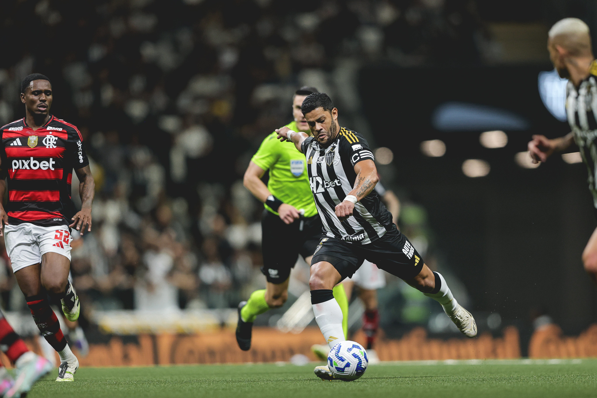 A partida teve um início com o Flamengo impondo seu ritmo, pressionando o Atlético-MG e buscando o campo de ataque. A primeira oportunidade de perigo para o time carioca surgiu aos 13 minutos, em um arremate de Pedro. A resposta do Galo veio em seguida, com Hulk finalizando próximo à meta após receber um passe na entrada da área.