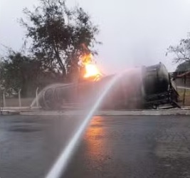 Em Álvaro de Carvalho, um caminhão que transportava petróleo pegou fogo no início da manhã desta segunda-feira (13), na Rodovia Dona Leonor Mendes de Barros (SP-349).