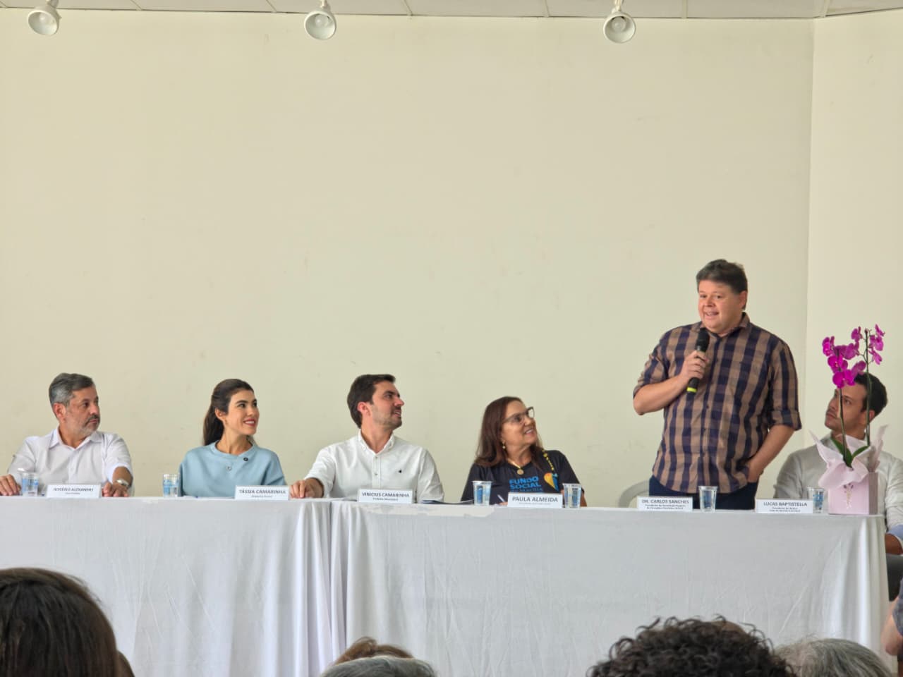 Durante o lançamento, estiveram presentes a presidente do Fundo Social, Paula Camarinha, a primeira-dama Tássia Camarinha e o prefeito Vinicius Camarinha, que reforçaram a importância do engajamento da população.