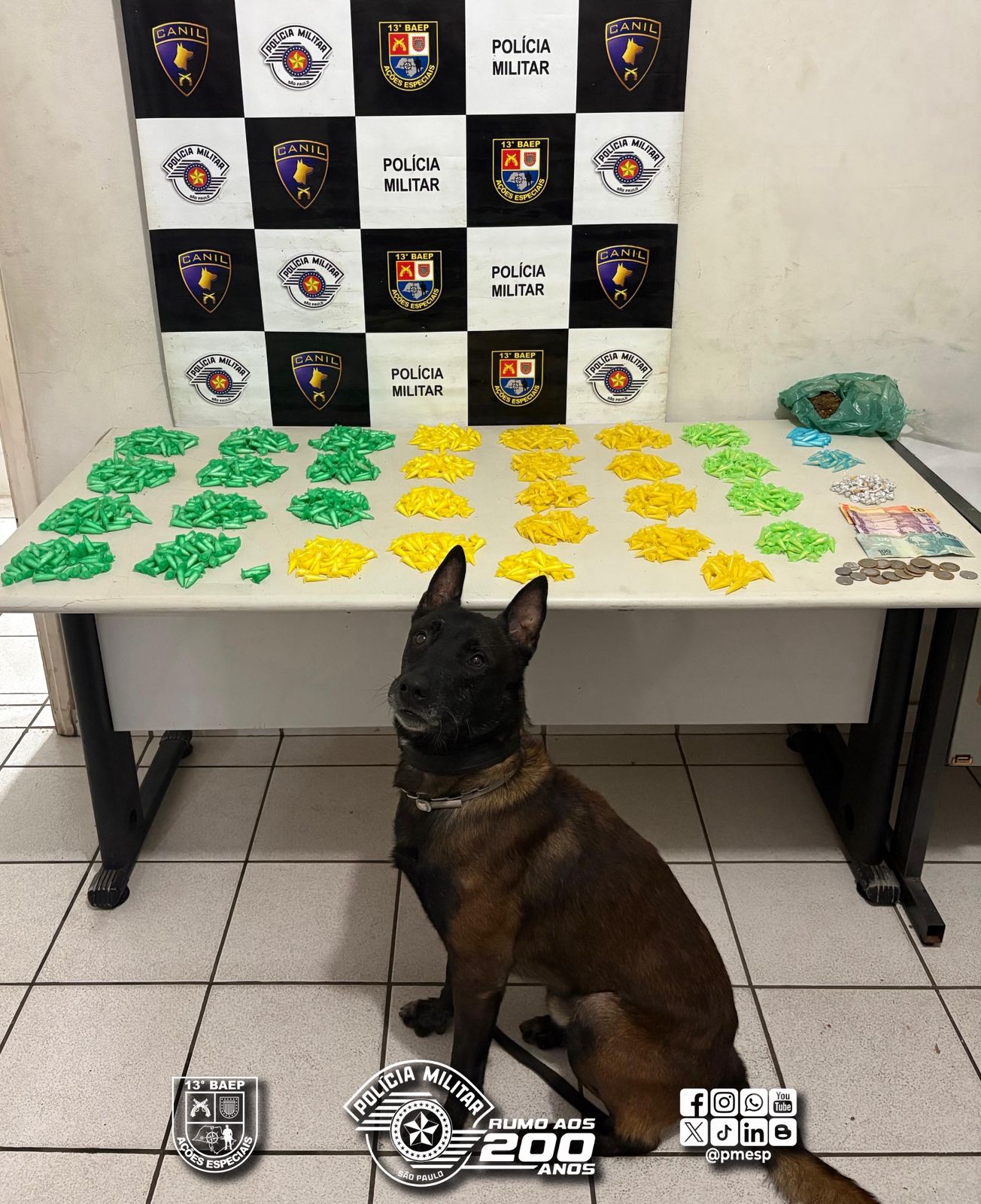 Canil do 13º BAEP apreende mais de 1,5 mil porções de drogas e prende dois em Marília