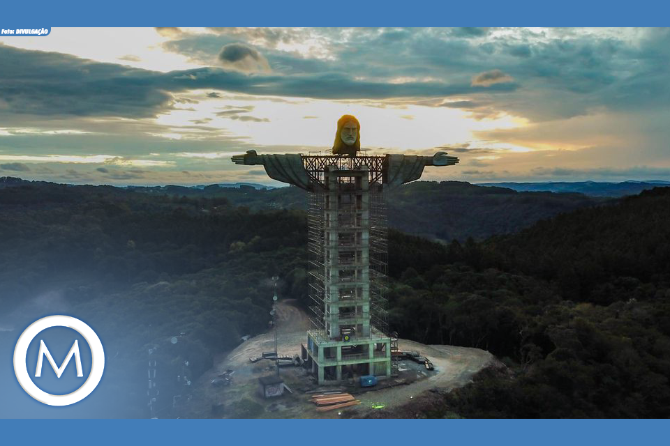 A obra do Cristo de Encantado ganhou destaque na semana passada, quando os promotores do projeto concluíram o içamento dos braços e da cabeça da estátua.