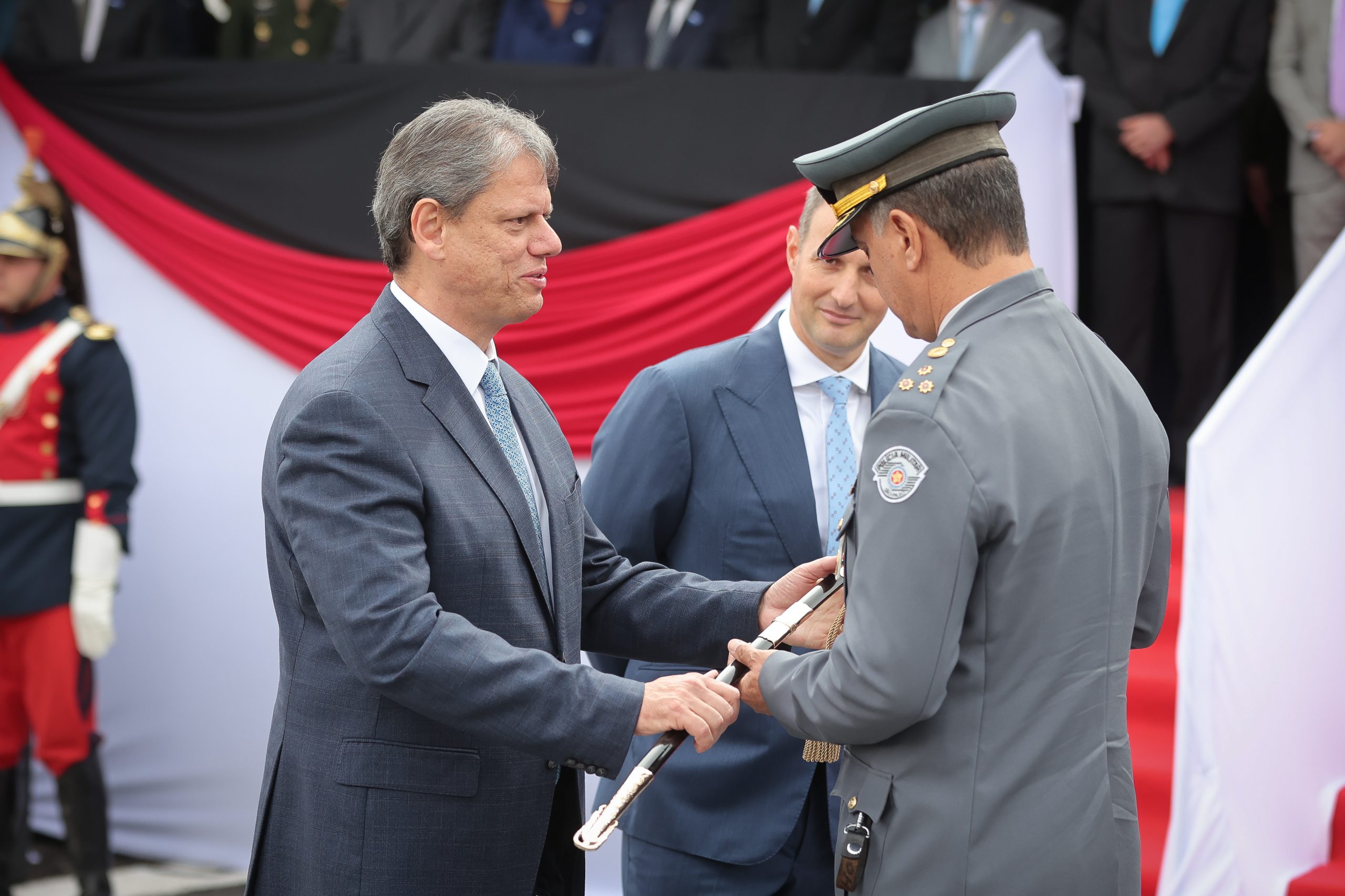 “É uma alegria muito grande estar aqui em um dia tão simbólico. O Coronel Cássio sai hoje com a certeza da missão cumprida e de ter deixado um legado e o Coronel Coutinho assume com a certeza de que vai ser um brilhante comandante da Polícia Militar do Estado de São Paulo. Fará um grande trabalho que vai perpetuar o legado que garante a excelência dessa corporação”, afirmou o governador Tarcísio de Freitas.