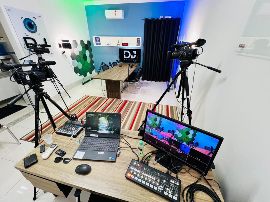 Desde 2022, a empresa também disponibiliza um estúdio de podcast para locação, atendendo à crescente demanda por produção de conteúdo digital. O Brasil é o terceiro maior consumidor de podcasts no mundo, e a DJ EVENTOS oferece um espaço flexível e estruturado para gravação de programas e conteúdos audiovisuais.