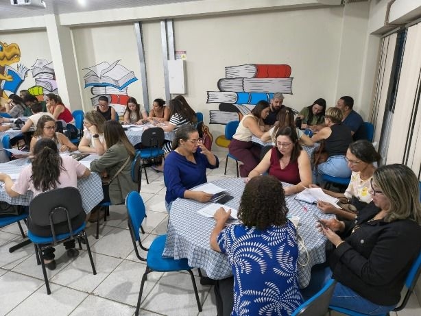 Na segunda parte da reunião, os participantes foram divididos em grupos de estudo. E cada grupo ficou responsável por analisar o currículo de um ano do Ensino Fundamental. O trabalho coletivo teve como foco identificar as habilidades da BNCC Computação já presentes nas práticas pedagógicas e aquelas que ainda precisam ser fortalecidas.