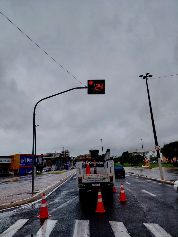 A Emdurb – Empresa de Mobilidade Urbana realizou uma operação emergencial na tarde desta terça-feira (09) para garantir a fluidez e a segurança do trânsito durante a forte chuva que atingiu a cidade. O temporal provocou instabilidades pontuais no sistema semafórico e aumento no fluxo de veículos em algumas vias, exigindo ação imediata das equipes.