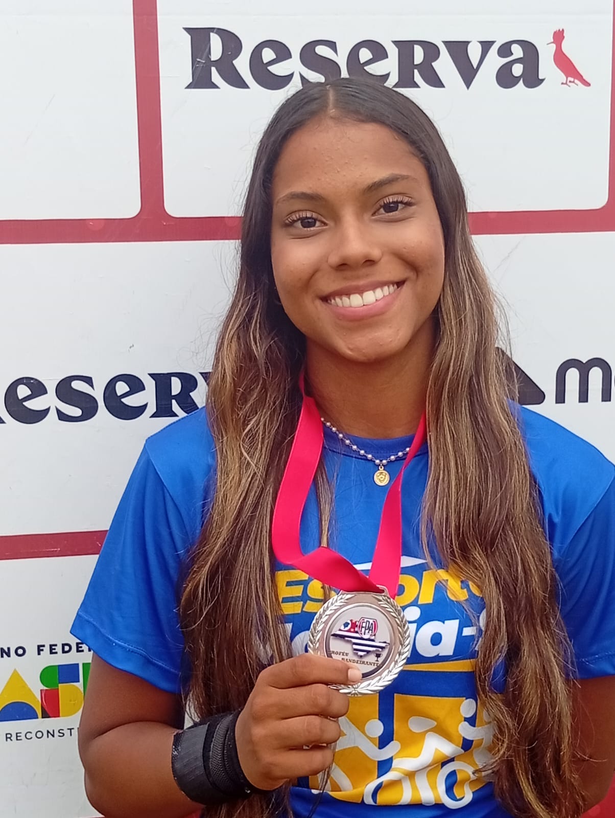 Outra atleta que mostrou versatilidade foi *Beatrice de Oliveira Braz, que competiu em duas provas. No **salto em distância, atingiu **3,75m, demonstrando explosão e boa técnica. Já nos **80 metros rasos, completou a prova com o tempo de **12,93 segundos*, conquistando bom desempenho entre as velocistas.