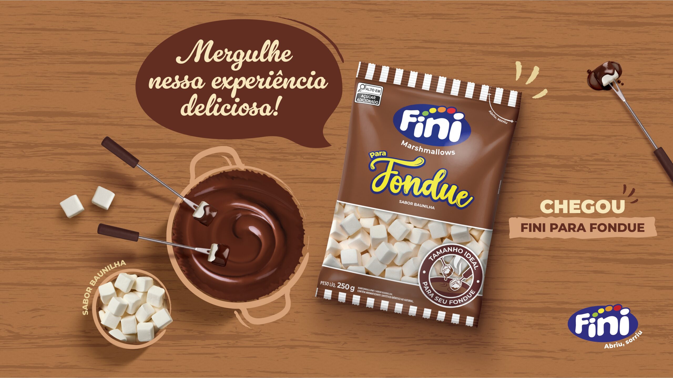 Com a temporada mais fria do ano chegando, a Fini, líder no segmento de balas de gelatina, regaliz e marshmallows no País, apresenta mais uma novidade para os Finilovers, Marsh Fondue, um marshmallow no sabor baunilha. O lançamento está previsto para chegar nos pontos de venda e, também, ao site da marca, a partir de maio, e promete ser o acompanhamento perfeito para os amantes de fondue.