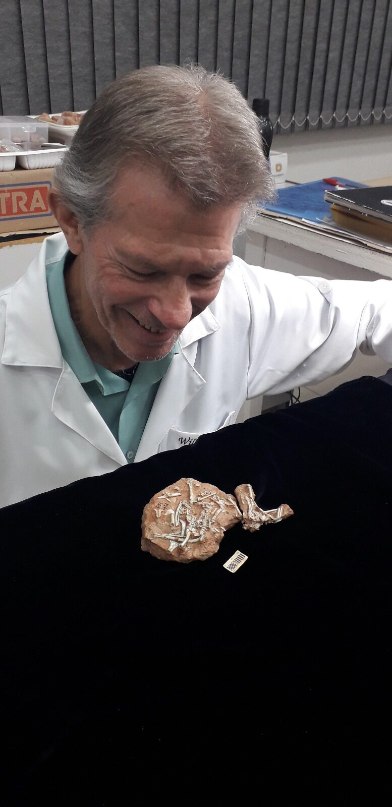 Inicialmente as análises nessas rochas revelaram partes bem preservadas de um pequeno esqueleto de ave e somente em agosto de 2018, avançando na preparação do bloco de arenito no laboratório do Museu de Paleontologia de Marília, que o cientista notou evidências ósseas que poderiam indicar se tratar de um crânio.