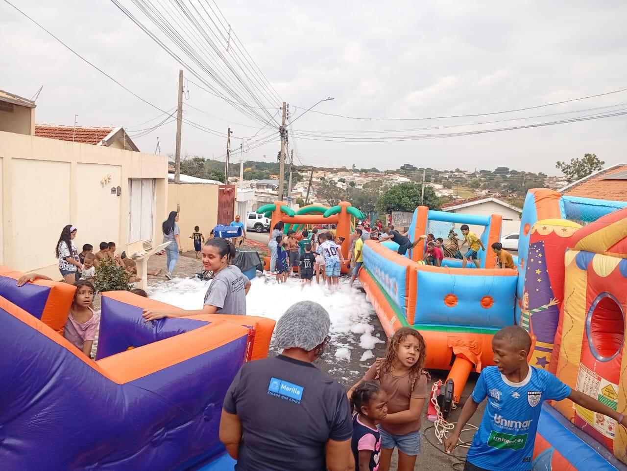 O Fundo Social de Marília marcou presença na festa em comemoração ao Dia das Crianças, promovida pelo Projeto Lumiar na comunidade Argolo Ferrão. A ação proporcionou uma tarde repleta de alegria e diversão para as crianças da região, com brincadeiras, música, lanches e muita descontração.