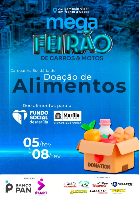 A Prefeitura de Marília convida a população a visitar o evento e contribuir com a causa social. As cestas básicas arrecadadas serão destinadas às entidades e famílias em situação de vulnerabilidade atendidas pelo Fundo Social.
