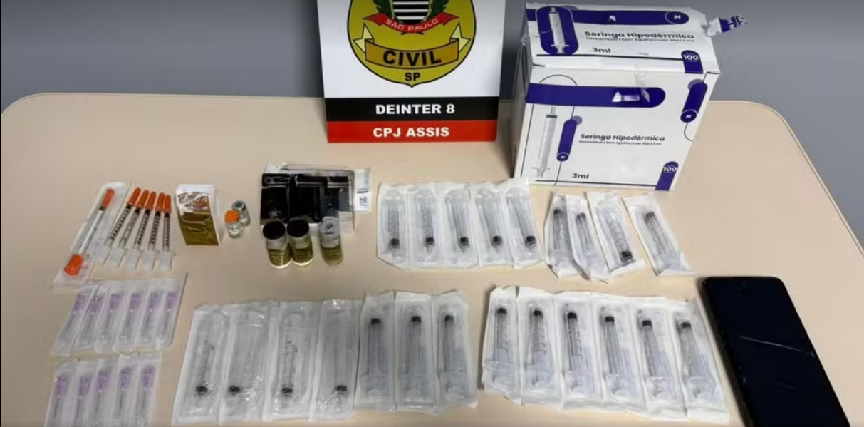 Durante a operação, foram cumpridos quatro mandados de busca e apreensão com foco na venda irregular dessas substâncias. Na residência de um homem de 39 anos, os policiais encontraram ampolas do medicamento emagrecedor, além de diversas seringas. Nos demais endereços vistoriados, nenhum material ilícito foi localizado.