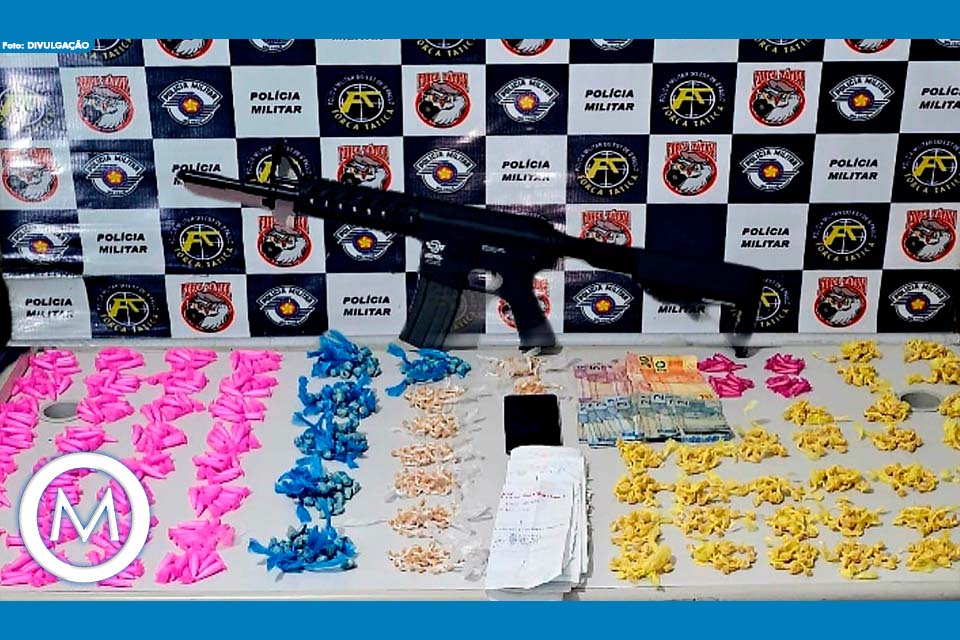 O suspeito foi abordado, e durante uma revista, foram encontrados em sua posse 10 porções de cocaína, 18 porções de crack, R$ 110,00 em dinheiro e um aparelho de telefone celular. Ao ser questionado pelos policiais militares, o homem admitido estava envolvido na venda de drogas e informou que havia mais entorpecentes escondidos no quintal da residência. Em uma busca mais detalhada, os policiais localizaram e apreenderam um total de 319 porções de cocaína, 1.204 porções de crack e um simulacro de arma de fogo tipo fuzil.