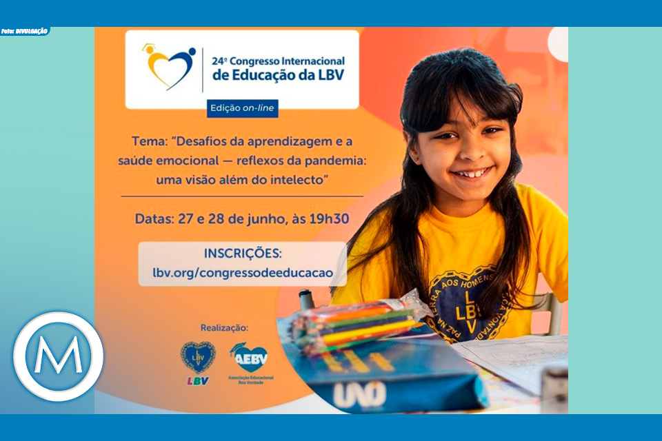 Por acreditar no poder transformador da Educação, a Legião da Boa Vontade (LBV) realiza anualmente o seu Congresso Internacional de Educação que nessa 24ª edição abordará o tema: “Desafios da aprendizagem e a saúde emocional — reflexos da pandemia: uma visão além do intelecto”. O evento, que ocorrerá de forma virtual pelo YouTube nos dias 27 e 28 de junho, às 19h30, já está com inscrições abertas.