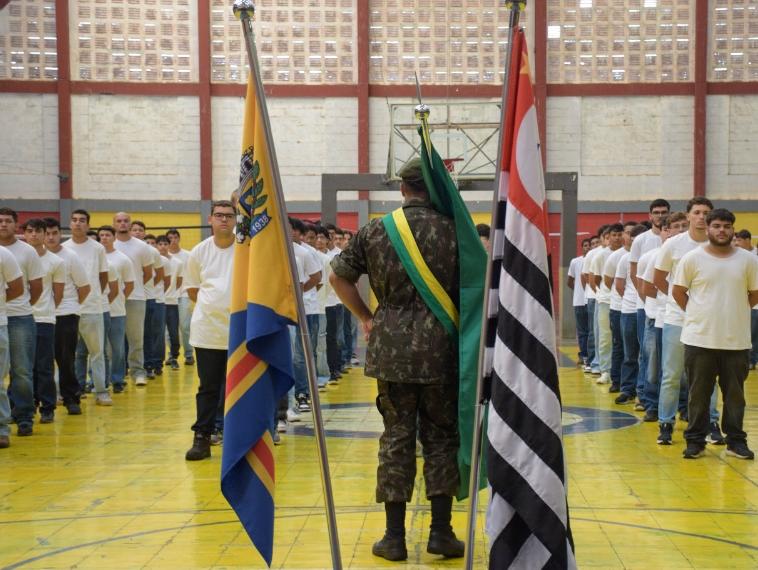 Jovens realizaram a importante cerimônia de Juramento à Bandeira Nacional, em Pompeia, nesta terça-feira (21), no ginásio Chevrane Resende “Panelão.