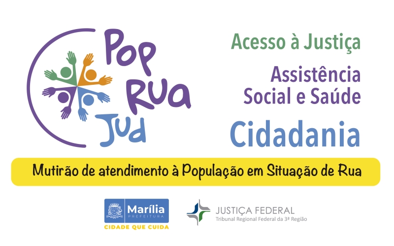 O Tribunal Regional Federal da 3ª Região do Estado de São Paulo – TRF3, a Justiça Federal de Marília e a Prefeitura de Marília realizarão a primeira edição do Pop Rua Jud do centro oeste paulista, nos dias 25 e 26 de novembro, na Praça Maria Izabel (ao lado da Igreja São Bento), no centro. Os atendimentos serão das 9h às 14h.