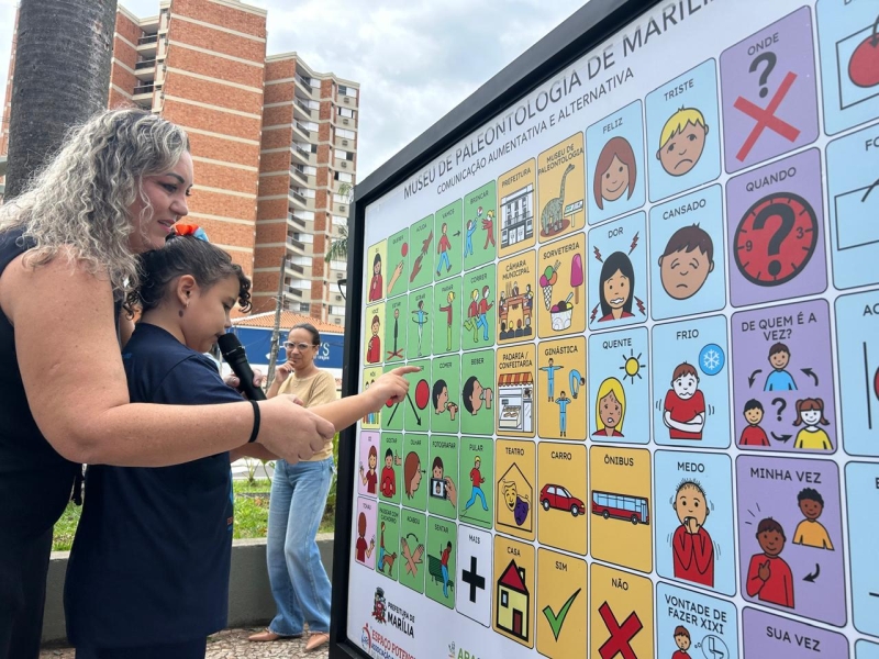 Na manhã desta quinta-feira, 2 de abril, a cidade de Marília deu um importante passo em direção à inclusão com a inauguração do primeiro Painel de Comunicação Aumentativa e Alternativa (CAA). O equipamento foi instalado em frente ao Museu de Paleontologia, localizado na Avenida Sampaio Vidal, esquina com a Avenida Rio Branco, e tem como objetivo ampliar as possibilidades de comunicação para pessoas com dificuldades na fala.
