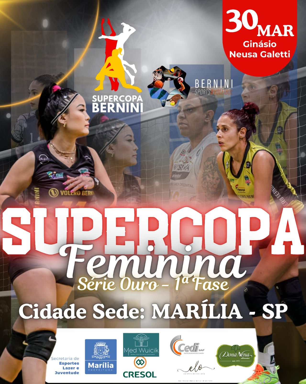 Com apoio da Prefeitura de Marília, por meio da Secretaria Municipal de Esportes, Lazer e Juventude, no próximo domingo, dia 30 de março, Marília será sede da etapa de abertura da Supercopa Feminina Bernini de Vôlei – Série Ouro.