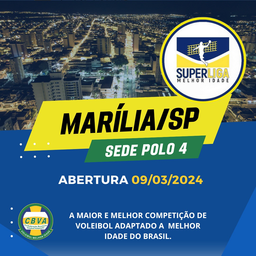 Marília será a sede para abertura da etapa regional da Superliga Melhor Idade de Vôlei Adaptado 2024. O evento acontece no próximo sábado, dia 9 de março, com partidas agendadas no Ginásio Neusa Galetti, na região Oeste, e também no Ginásio da Associação Atlética Banco do Brasil (AABB), na zona Leste.