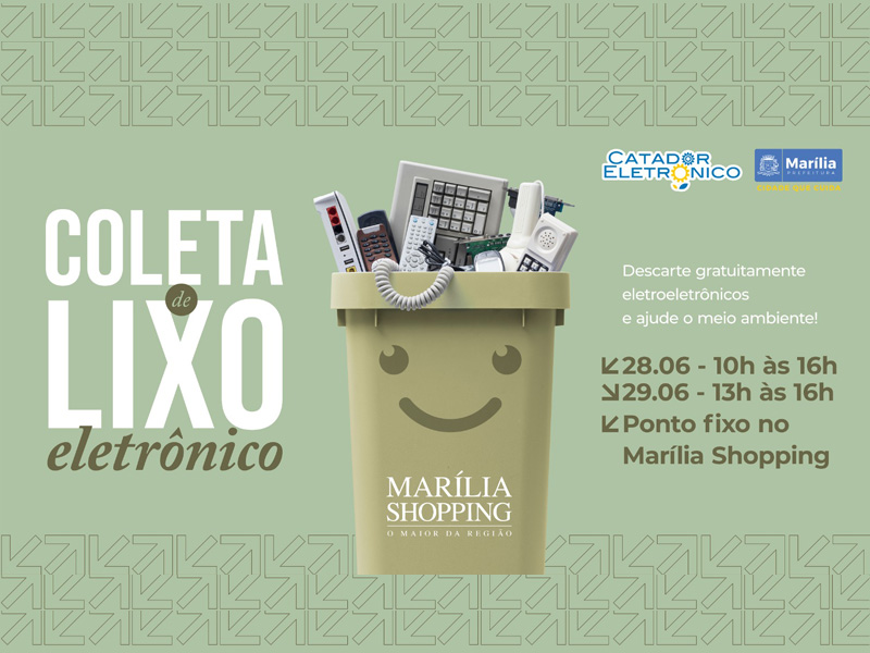 Como parte das comemorações ao mês do Meio Ambiente, o Marília Shopping, em parceria com a Secretaria Municipal do Meio Ambiente, promove uma ação especial de coleta de lixo eletrônico nos dias 28 e 29 de junho. Gratuita, a iniciativa reforça o compromisso do empreendimento com a sustentabilidade e a responsabilidade social, incentivando o descarte correto de resíduos eletroeletrônicos.