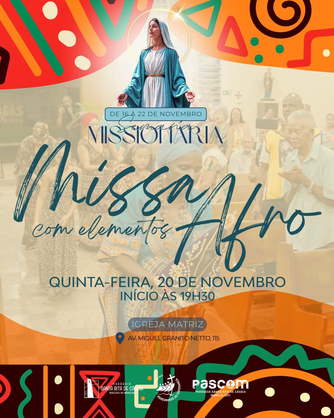 A Missa, que conta com elementos afros, ocorrerá às 19h30 na Igreja Matriz de Santa Rita de Cássia, na zona sul de Marília, e tem o objetivo de unir a comunidade em torno da fé na oração pelos negros que ainda sofrem algum tipo de preconceito.