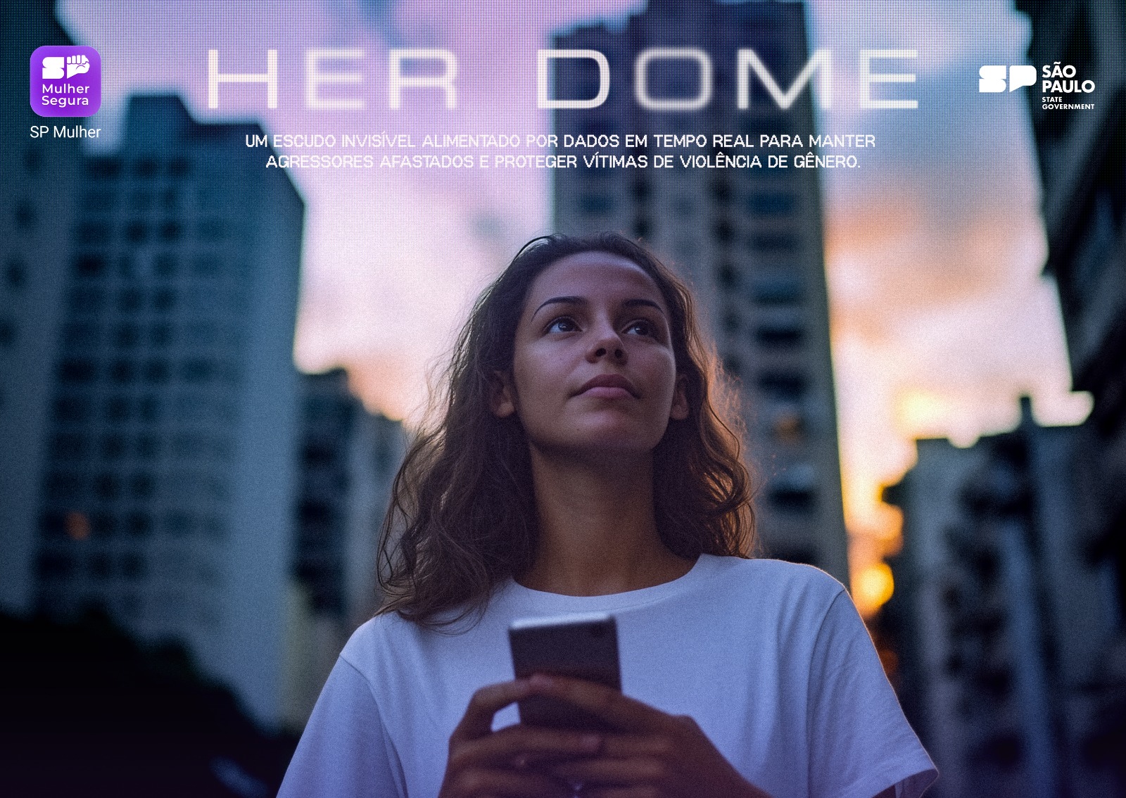 O Her Dome engloba as soluções de segurança criadas pelo Governo de SP: uma espécie de “raio de proteção” é formada a partir do uso do aplicativo SP Mulher Segura pela mulher com medida protetiva, o monitoramento do agressor por meio de tornozeleiras eletrônicas e o trabalho ininterrupto da Cabine Lilás do COPOM – Centro de Operações da Polícia Militar. Para essas mulheres, o alerta resulta no deslocamento imediato de viatura para garantir a proteção. O aplicativo também integra o boletim de ocorrência das polícias Militar e Civil.