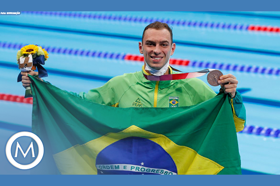 Fernando Scheffer, de 23 anos, conquistou a primeira medalha da natação brasileira na Olimpíada de Tóquio (Japão). O gaúcho cravou o tempo de 1min44s66 e garantiu o bronze nos 200 metros estilo livre na noite desta segunda-feira (26) no Centro Aquático de Tóquio.