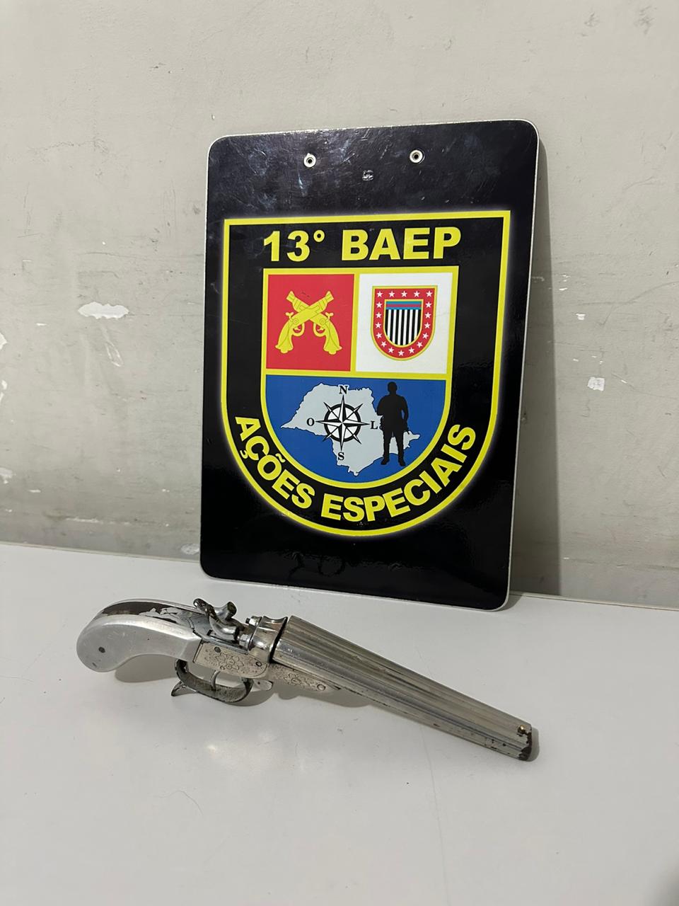 Após uma perseguição emocionante, a equipe conseguiu abordar os suspeitos em uma área de mata próxima à Rua Joaquim Antônio de Souza. Durante a busca pessoal, foi encontrado com o condutor, que possui antecedentes criminais pelo Art. 157 CP, uma arma de fogo do tipo garrucha calibre 380, sem munições e com a numeração suprimida. Já o outro ocupante, conduzido anteriormente por evadir-se de viatura policial, não portava nada de ilícito.