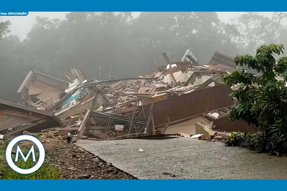 Um prédio localizado na Ladeira das Azaleias, em Gramado (RS), desabou, por colapso estrutural, por volta das 5h40 desta quinta-feira (23) em razão do grande volume de chuvas na região. De acordo com a prefeitura, o local estava isolado desde o último sábado (18) e não há registro de vítimas. “O prédio caiu dentro de seu próprio terreno e não atingiu o bairro Três Pinheiros”.