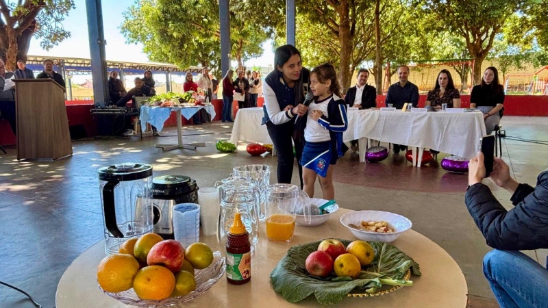 O evento contou com apresentações dos alunos do Infantil I A (teatro das crianças) e Infantil II B (receita de suco saudável), das professoras Andreia Carolina Mattos e Vânia Carrion.