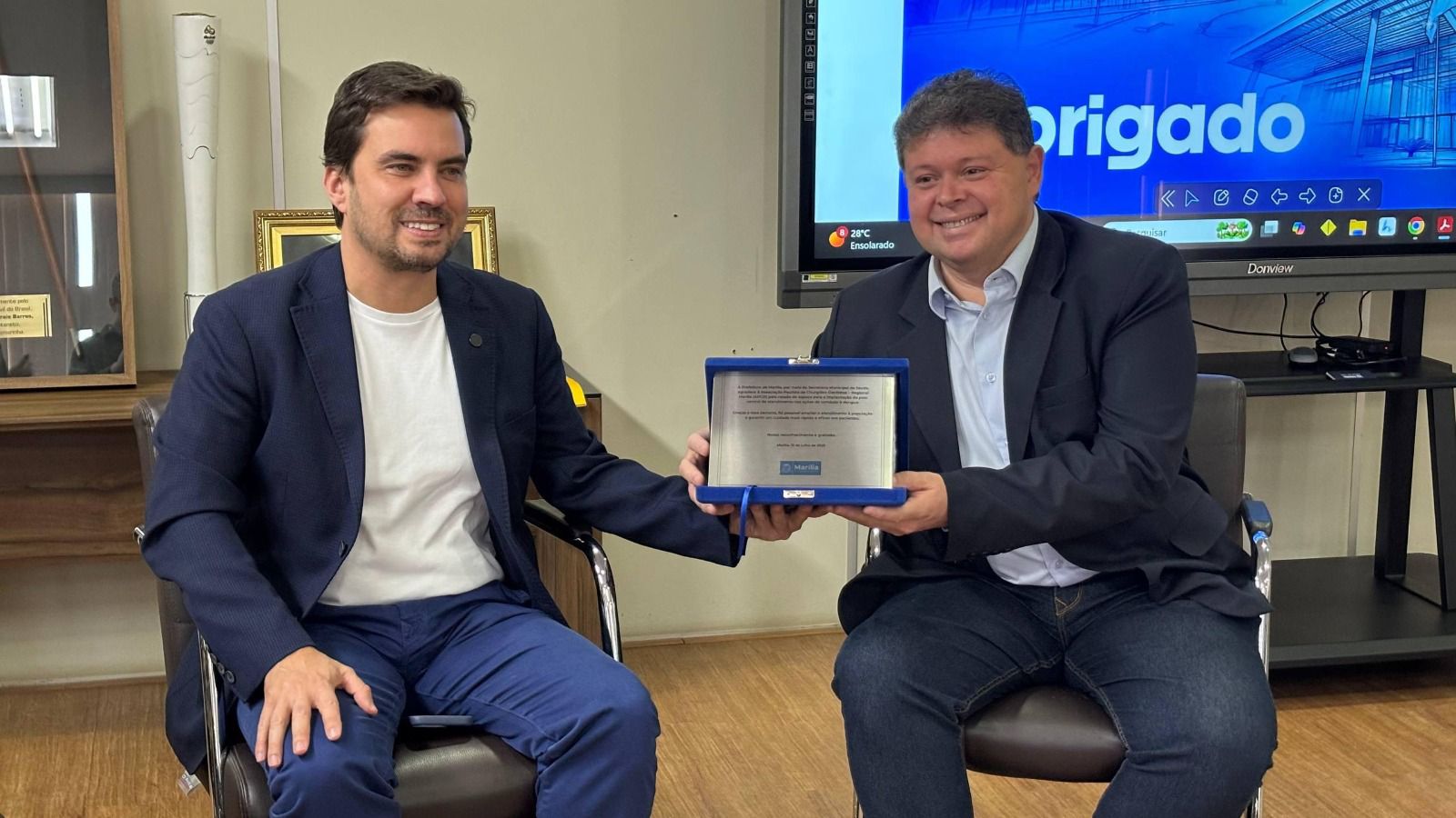 O prefeito Vinicius Camarinha (PSDB) recebeu no gabinete no Paço Municipal na quinta-feira (17) membros da APCD (Associação Paulista de Cirurgiões-Dentistas), regional Marília, para entregar uma placa com mensagem de agradecimento da Prefeitura Municipal pela cessão do prédio da sede da entidade, que foi utilizado como polo de atendimento à população contra a dengue no momento crítico da doença.