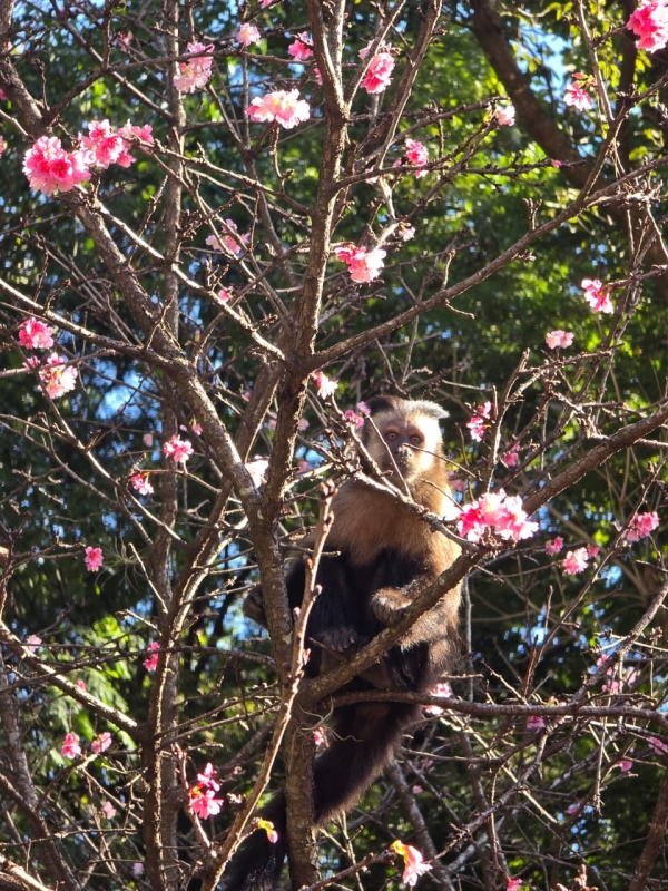 Durante o período diurno, a equipe técnica identificou um fluxo significativo não apenas de quatis, mas também de macacos-prego, com um grupo estimado entre 10 e 12 indivíduos, que utilizam a mesma rota de deslocamento entre o vale e o bosque.