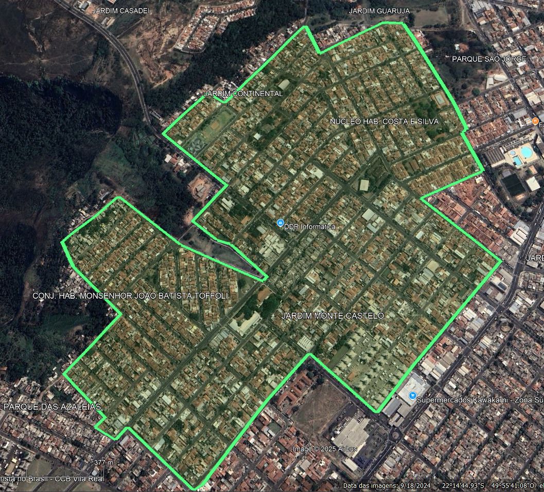 A área 1 tem início na região do Quartel da PM (Polícia Militar) até a rua Antônio Pereira da Silva com a Avenida Antártica; a 2 começa na rua Artur Calina e se estende até próximo ao bairro Azaleia; e a 3 vai da rua Duarte da Costa até a Avenida Francisco da Costa Pimentel em direção ao bairro Nova Marília III.