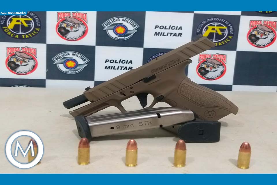 Ao ser questionado, o homem admitiu que guardava uma arma de fogo em sua residência. Diante dessa informação, os policiais realizaram diligências e apreenderam uma pistola 9mm com a numeração suprimida na casa do suspeito.