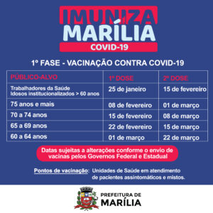 “O cumprimento desse cronograma depende exclusivamente da chegada das doses de vacina necessárias, tanto do Governo Estadual como do Governo Federal. A gente sabe que todos os esforços estão sendo realizados nesse sentido e esperamos que o mais breve possível toda a população possa ser imunizada. Enquanto isso é extremamente importante que todos continuem usando máscaras, fazendo a higienização das mãos com água e sabão ou álcool em gel, mantendo o distanciamento social e evitando aglomeração. Peço a compreensão e a colaboração da população nesse sentido”, afirmou Daniel Alonso.