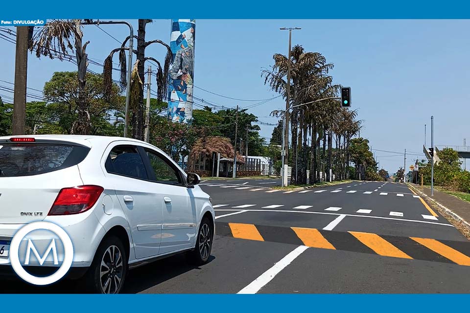 Entre as melhorias, estão o funcionamento do novo conjunto semafórico integrado com semáforos para pedestres na entrada do Univem, a implantação de novo redutor de velocidade e a colocação de placa aérea com indicações de rotas nas três pistas da Avenida no sentido centro/bairro.