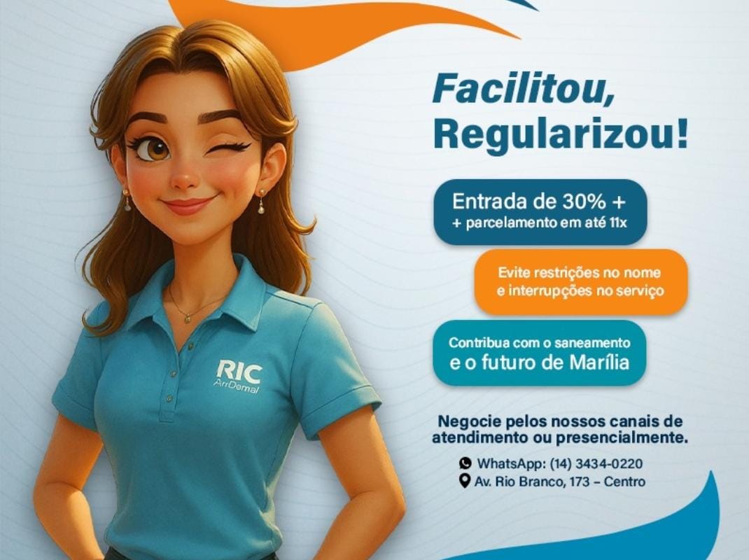 Para regularizar pendências e conhecer as condições de parcelamento, os clientes podem entrar em contato pelos canais de atendimento da RIC Ambiental pelo telefone e WhatsApp (14) 3434-0220 ou comparecer presencialmente na sede da concessionária, localizada na Avenida Rio Branco, 173 – centro.