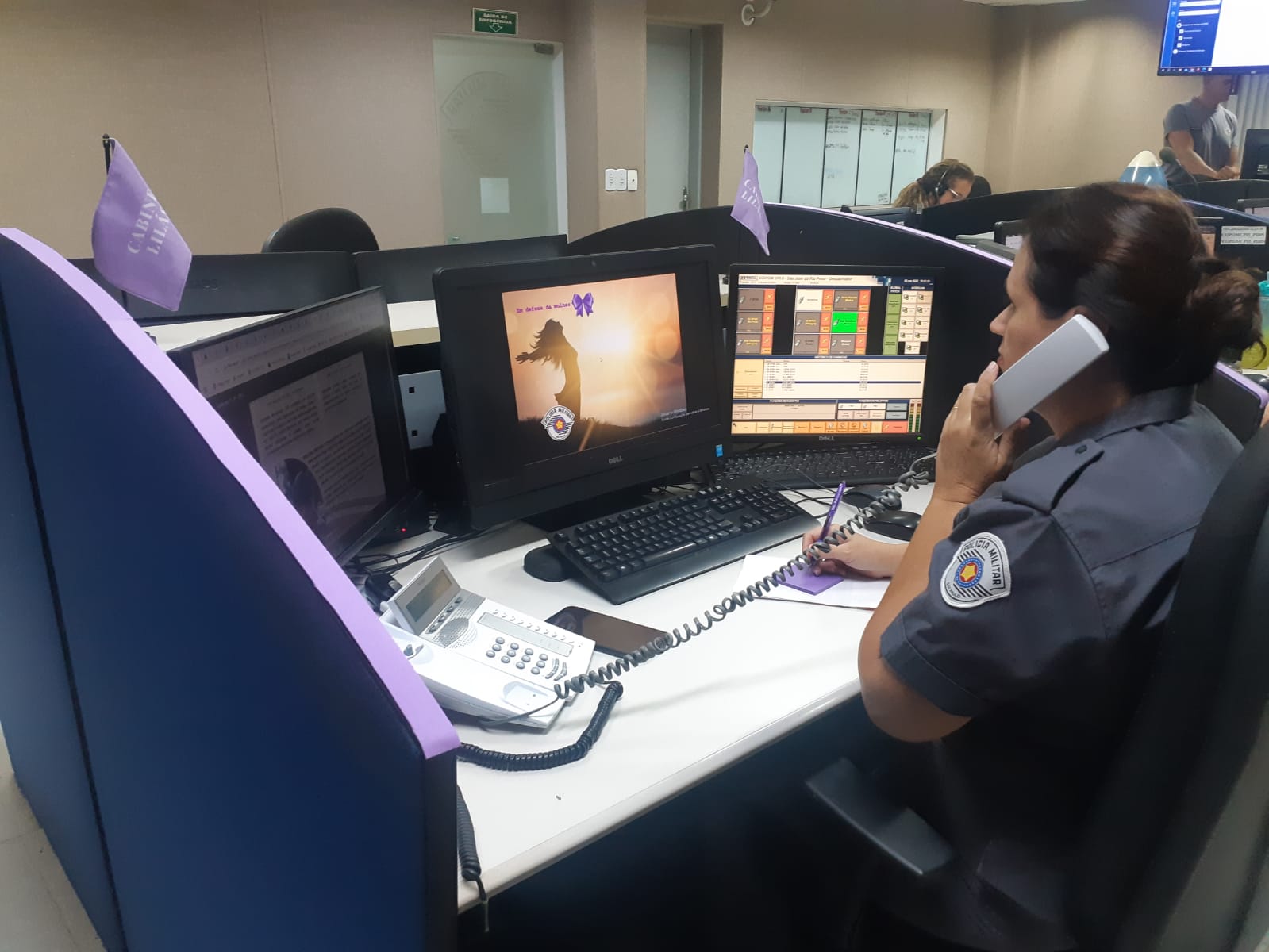 Outra iniciativa foi a criação da Cabine Lilás, instalada no Comando de Operações da Polícia Militar (Copom). O projeto, que começou na capital e foi expandido para São José do Rio Preto e Campinas, conta com atendimento exclusivo de policiais femininas via número 190, onde a vítima é informada sobre os direitos, redes de apoio disponíveis na região em que mora, acionamento de viaturas e ainda recebe orientações diversas sobre como agir em determinadas situações.