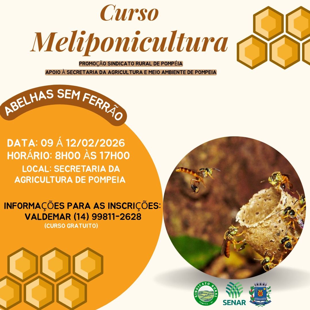 Exemplo disso é o curso gratuito que está com as inscrições abertas: Meliponicultura – Abelhas Sem Ferrão, que acontece entre 09 e 12 de fevereiro, das 8h às 17h.