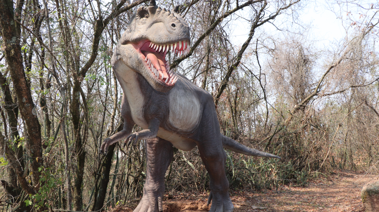 Réplica de dinossauro no Parque Rocha Moutonnée, em Salto. Foto: Divulgação/Setur-SP
