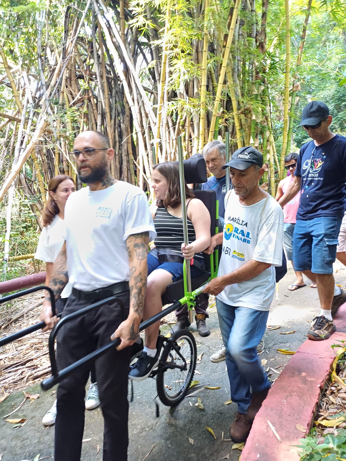 Dando sequência ao projeto Trilha de Inclusão, a Prefeitura de Marília, por meio das Secretarias Municipais do Trabalho, Turismo e Desenvolvimento Econômico e do Meio Ambiente e Serviços Públicos, juntamente com voluntários da Vertical Rapel, do Conselho Municipal de Turismo e outras instituições, realizou no último sábado, dia 15 de março, no Bosque Municipal “Rangel Pietraroia”, a capacitação para uso das cadeiras Julietti, que são específicas para pessoas com deficiência física ou mobilidade reduzida terem acesso à natureza.