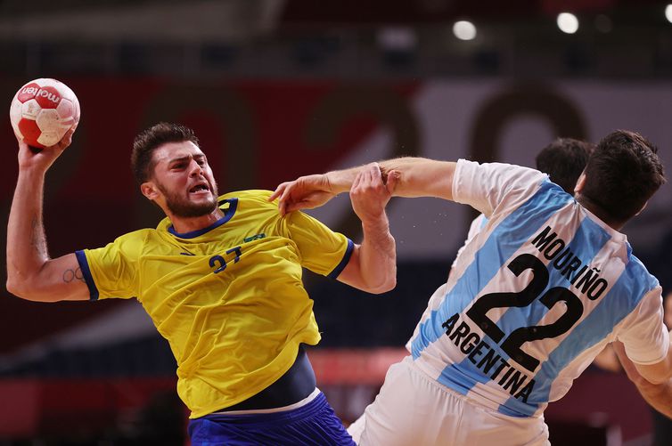 A seleção brasileira masculina de handebol conseguiu uma importante vitória de 25 a 23 sobre a Argentina, em partida válida pelo Grupo A, disputada no Ginásio Nacional Yoyogi, e manteve vivas as possibilidades de classificação para as quartas de final.