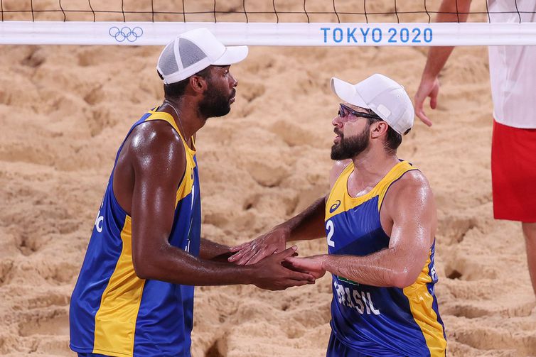 A dupla brasileira de vôlei de praia Evandro e Bruno Schmidt venceu, de virada, nesta sexta-feira, os poloneses Bryl e Fijalek, com parciais de 19/21, 21/14 e 17/15. O confronto foi realizado no Parque Shiokaze, na capital Tóquio. Com este triunfo, eles asseguraram a classificação para as oitavas de final na Olimpíada.